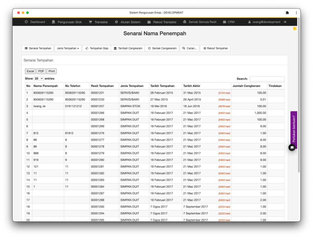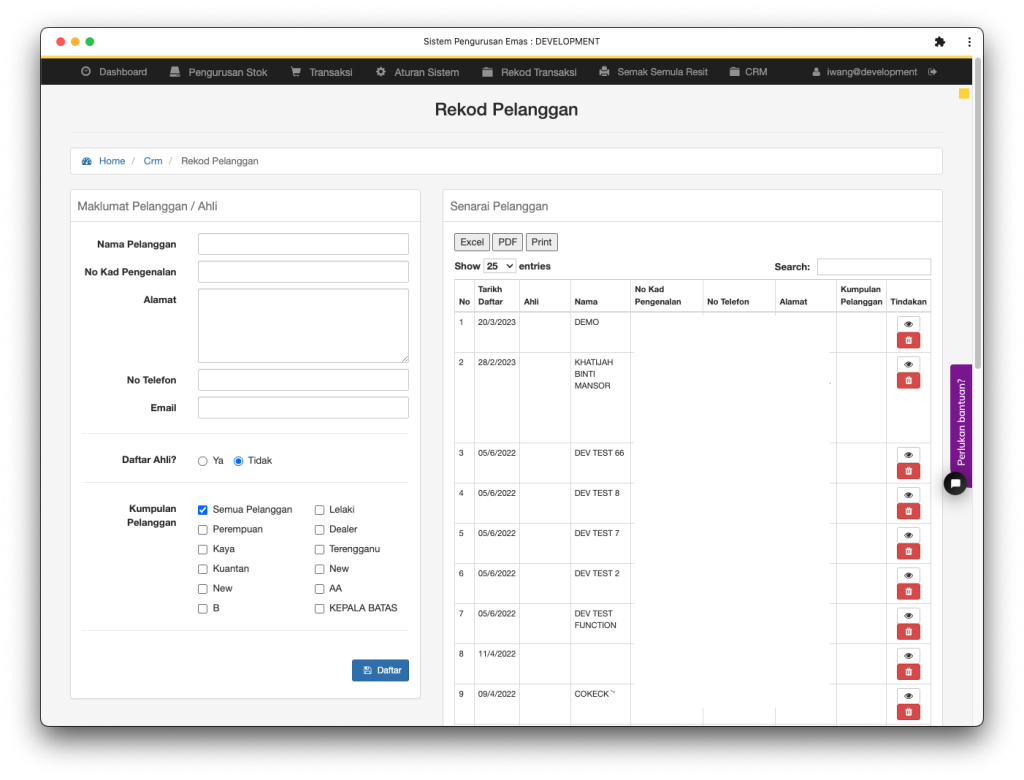 Rekod pelanggan yang pernah berurusan di kedai